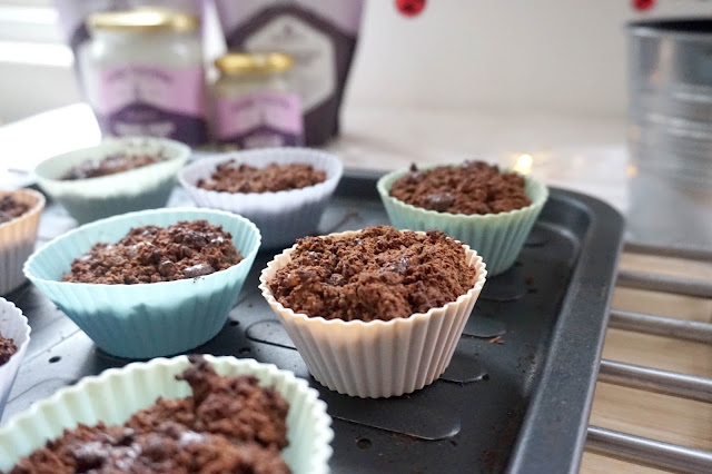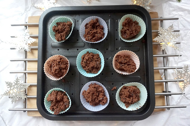 7. Generously spoon the mixture into each cupcake case and place in the oven for 20 minutes (be generous as the mixture won’t rise too much due to the density of the ingredients)
