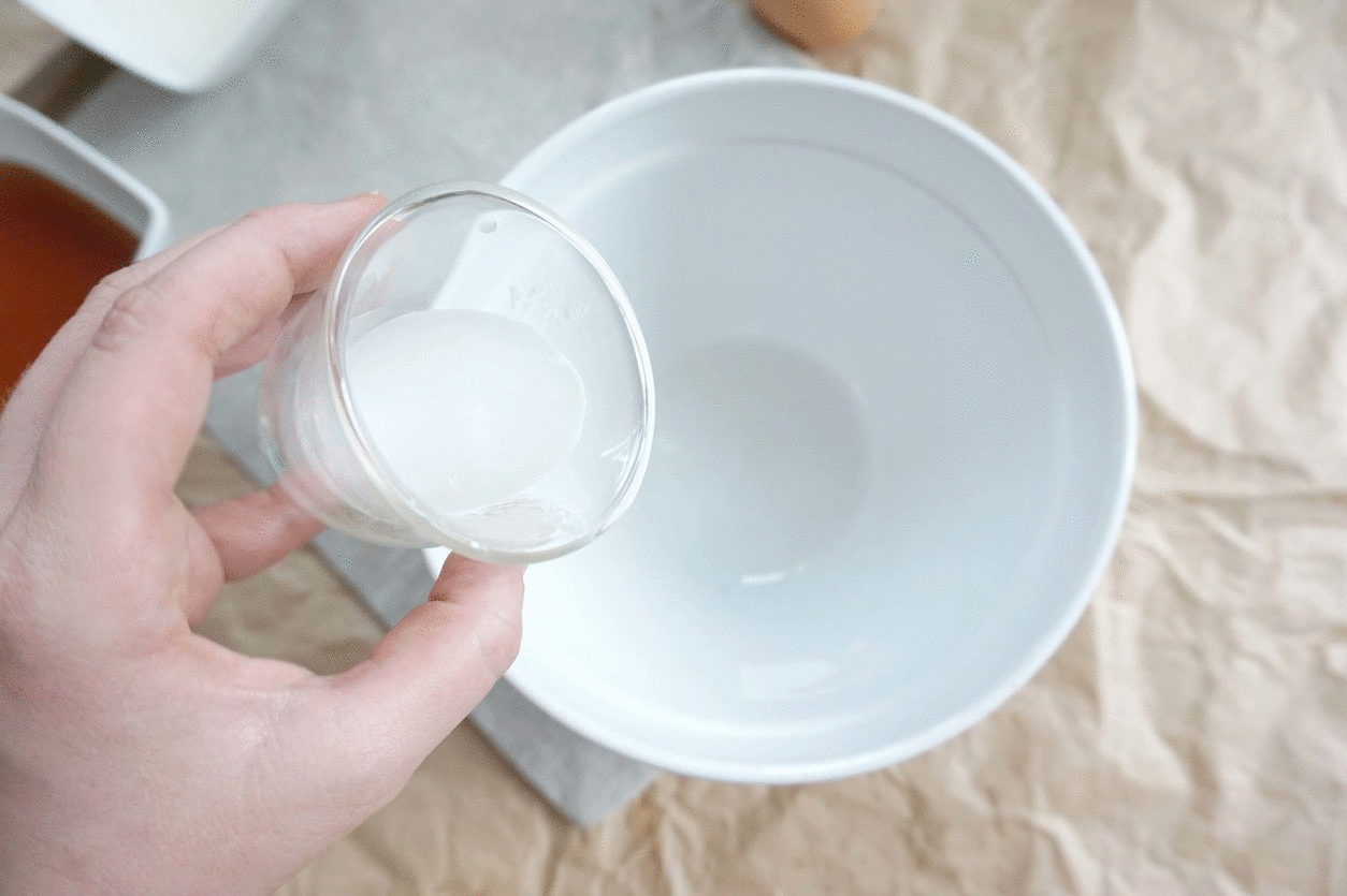 3. In a separate bowl beat together the coconut oil, egg, and vanilla. Next slowly stir in the golden syrup and Greek yoghurt whisking thoroughly to ensure the mixture is smooth.